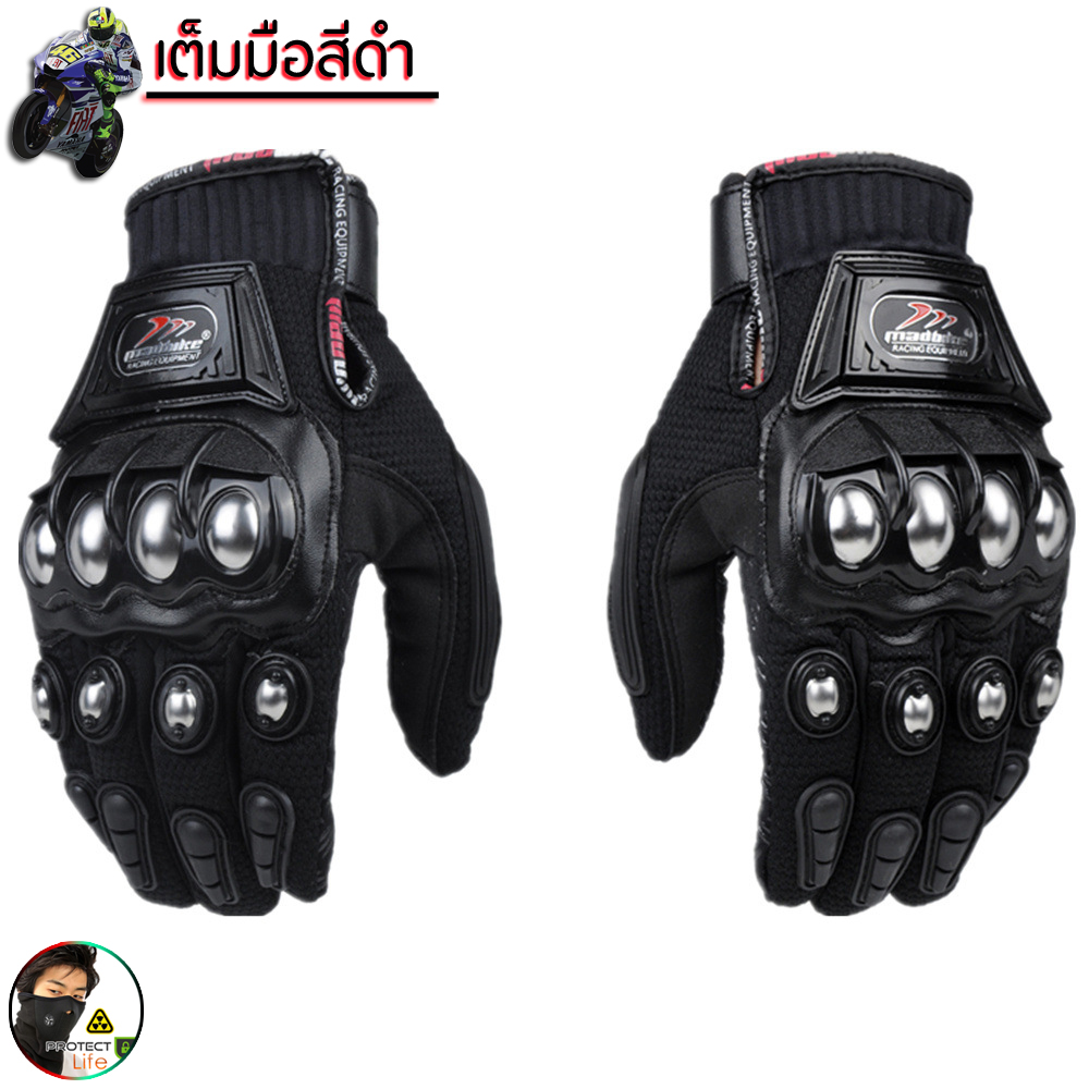 ถุงมือ ไบเกอร์ เต็มมือๆ เท่ห์ๆ หนังอย่างดี ปุ้มเหล็ก