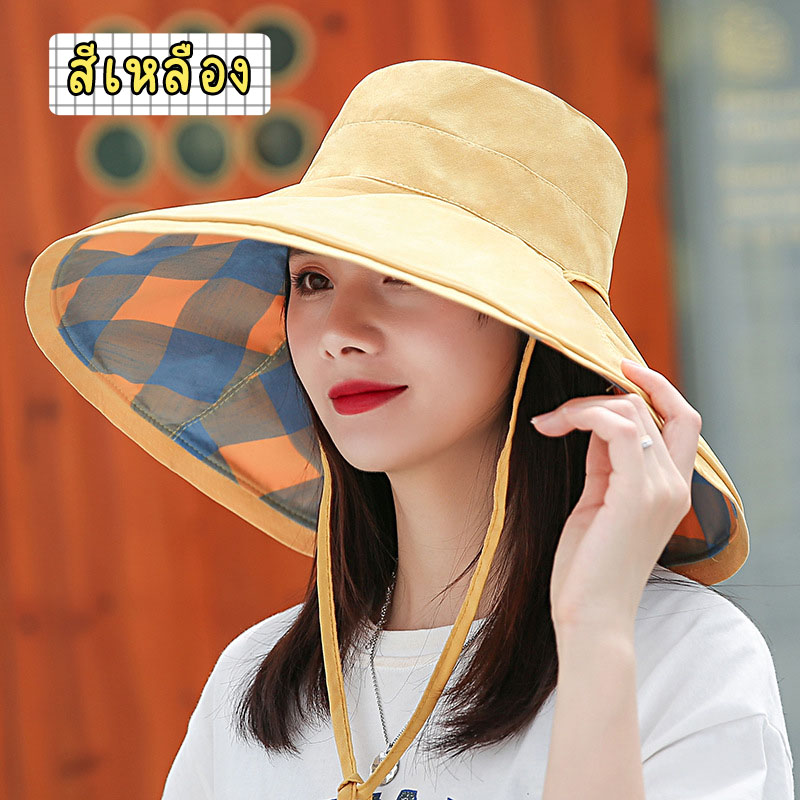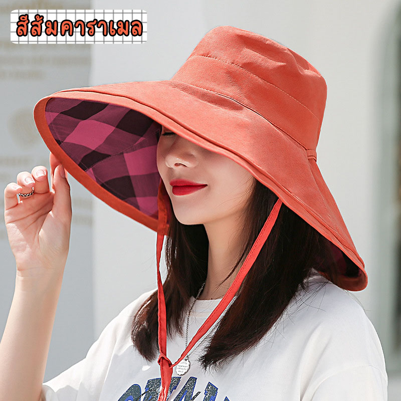หมวกปีกกว้างขอบลวด เกาหลี Hot กันUV สลับด้านได้ 2ลาย !!